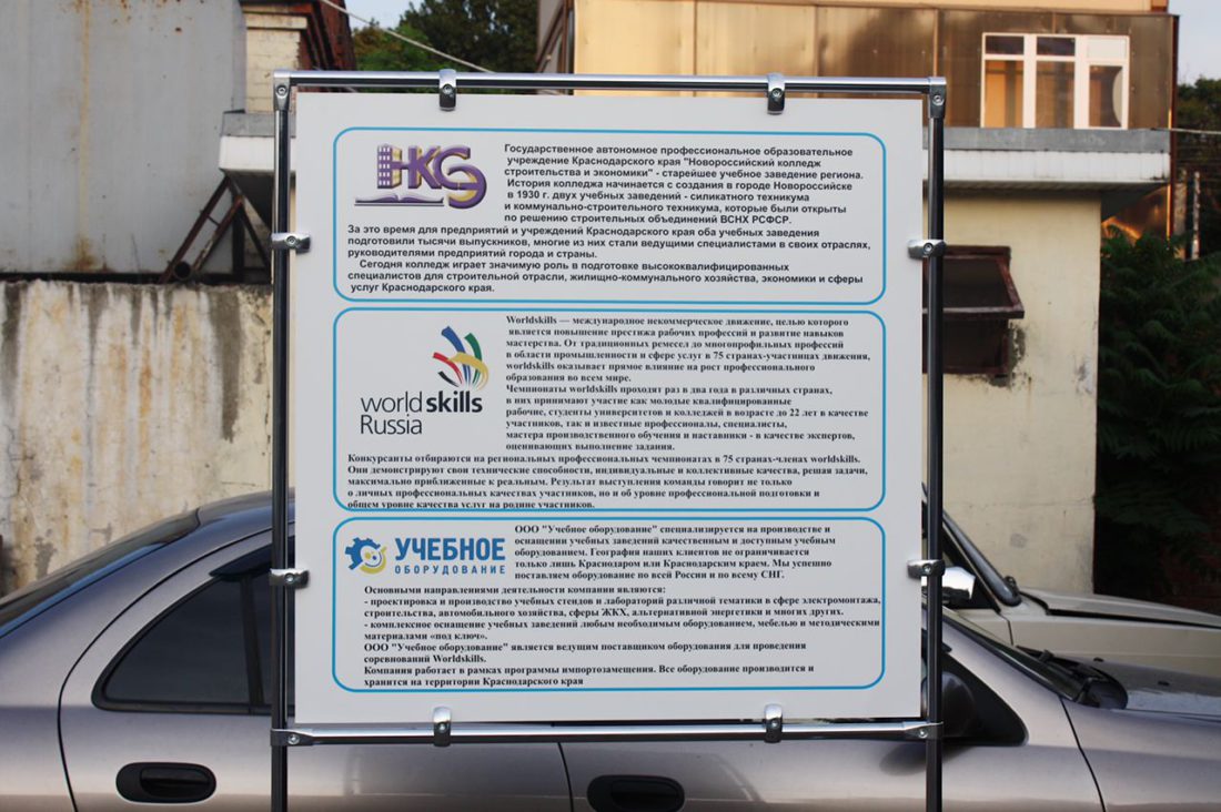 Информационных стендов. Конструкции используются в государственных организациях, магазинах, офисах, кинотеатрах, детских садах, школах. Стойка может быть из разных материалов, с “карманами” для информации.