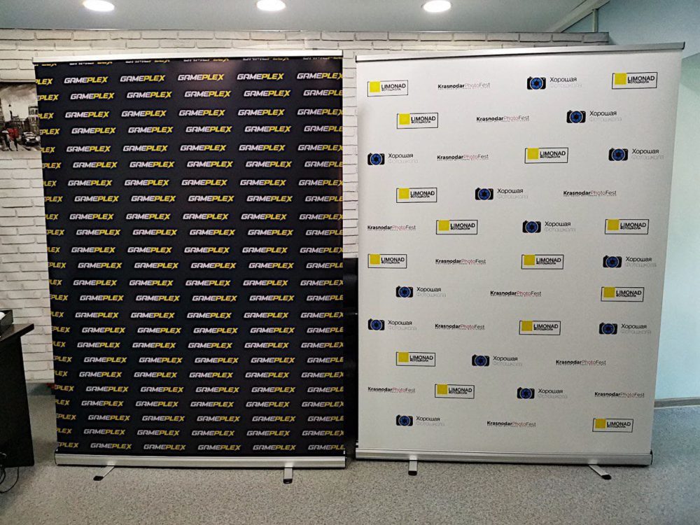 Ролл-апы завоевали популярность на выставках, презентациях, конференциях. Рекламное полотно скручивается внутрь, благодаря чему оборудование занимает минимум места. Высота конструкции в разложенном виде – 2 метра, а ширина подбирается исходя из ваших задач и бюджета.
